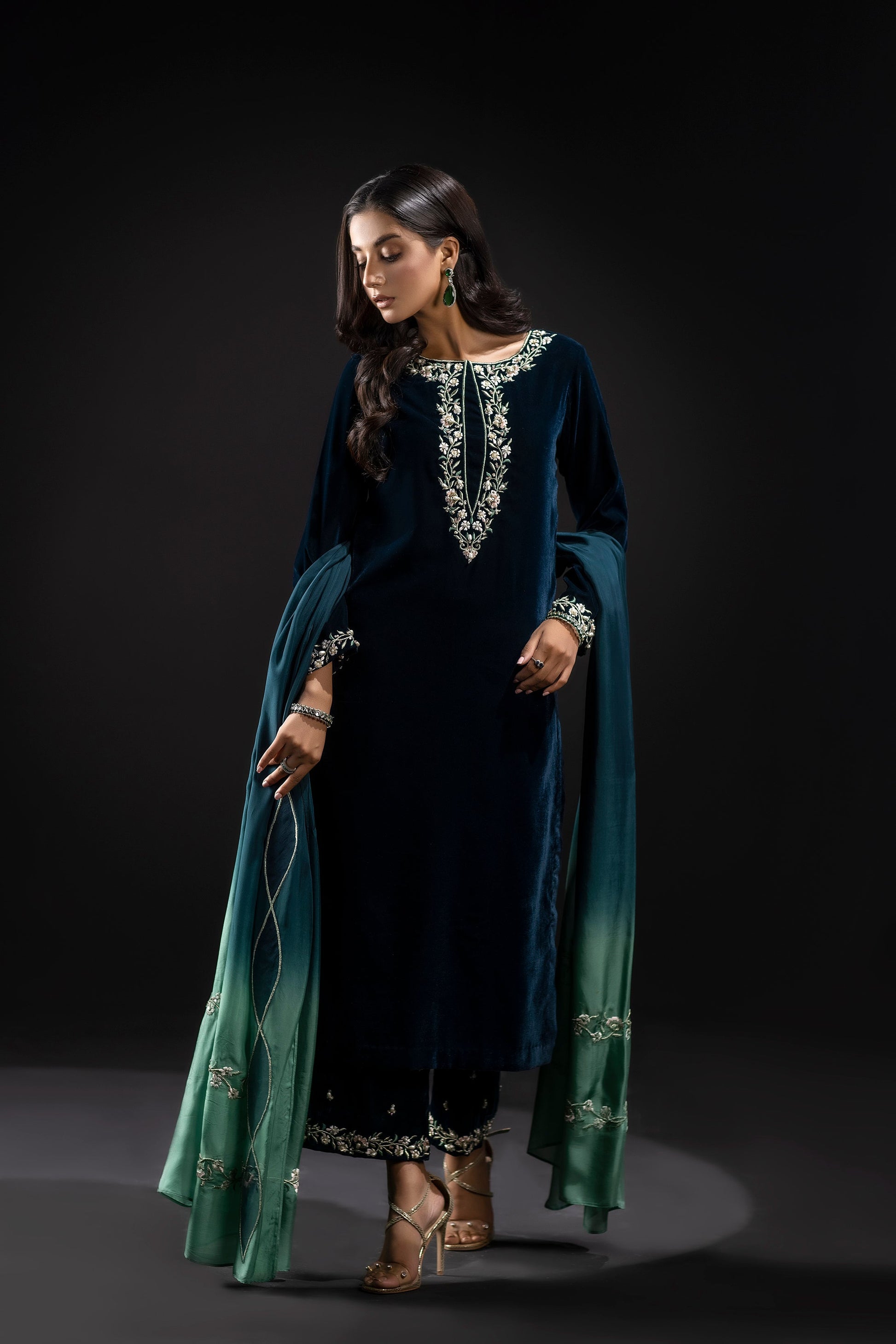 7002 Embroidered Velvet Dress with Karandi Shawl
